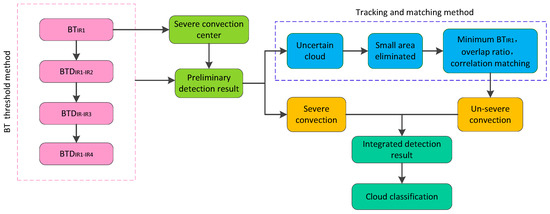 Convective cloud detection process. The detection process goes from the BT threshold method and ends with cloud classification.