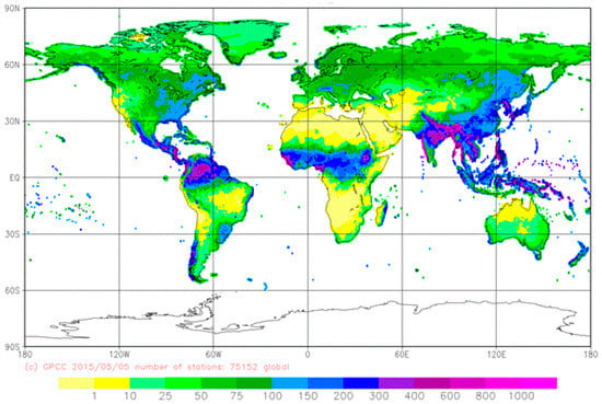 Since then, the GPCC has further improved and enhanced its database by adding, besides an additional level of quality-control, more precipitation data, so that the most recent release of the precipitation climatology dataset [3] is based on about 75,100 stations with climatological normals in the GPCC’s database (see Section 2).