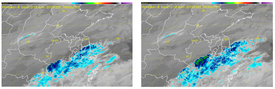 From the satellite image (Figure 7), it can be seen that, from 08:00 to 09:30 UTC on 22 December 2015, there was a cloud layer covered Nanjing from 16:20–17:30 on 22 December 2015 (local time), and the cloud moved from the southwest to the northeast, which was consistent with the second and the third cloud layers (Figure 6).