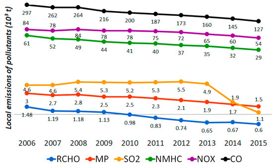 - Martins, M.H.R.B.; Anazia, R.; Guardani, M.L.G.; Lacava, C.I.V.; Romano, J.; Silva, S.R. Evolution of air quality in the Sao Paulo metropolitan area and its relation with public policies. Int. J. Environ. Pollut. 2004, 22, 430. [Google Scholar] [CrossRef]