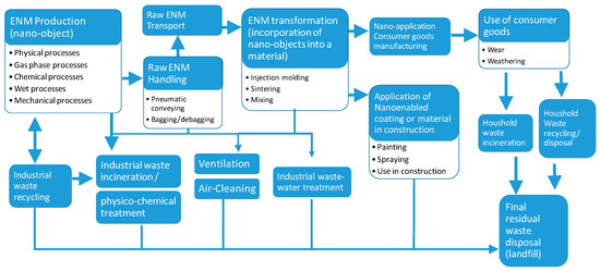 - Report for EU Project MARINA: Managing Risks of Nanomaterials; Summary Report on Processes and Activities Related to NM Lifecycle within Small and Large Industries; Grant Agreement Number 263215. Available online: http://www.marina-fp7.eu/activities/exposure/MARINA_Processes_Activities_related_NM_Lifecycle.pdf (accessed on 2 May 2017).