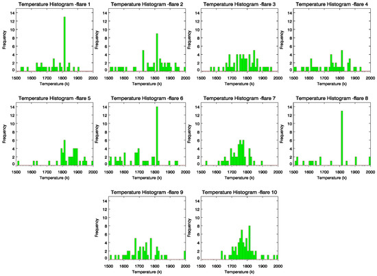 Histogram for fire temperature reported by VNF for ten chosen flaring sites in the study region over the five month period (April–August 2013).