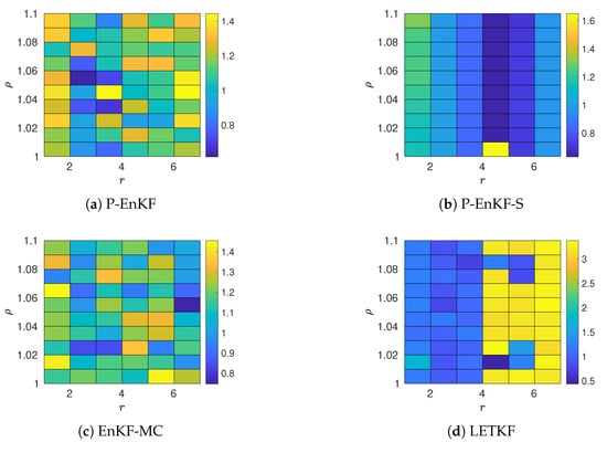 Experimental results with the Lorenz-96 model (22). The results are grouped by values of r. inflation factors are ranged in for each group.