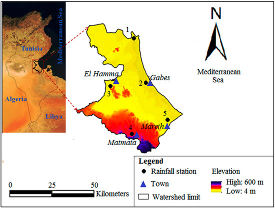 The Digital Elevation Model (DEM) of Gabes Watershed. (Jemai et al. [14], modified).