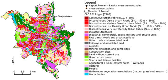 Location of measuring points against the type of land use (Urban Atlas 2012).