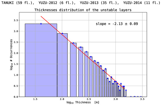 cm), suggest a ∼−1 power law distribution of the unstable layers thicknesses. On an other hand, the findings of Bellenger et al. [