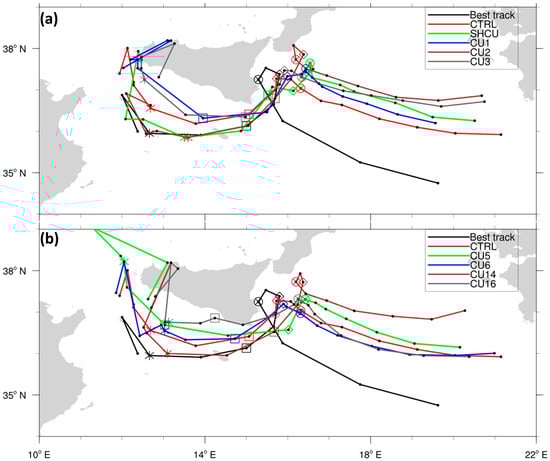 - Torn, R.D.; Davis, C.A. The influence of shallow convection on tropical cyclone track forecasts. Mon. Weather Rev. 2012, 140, 2188–2197. [Google Scholar] [CrossRef]