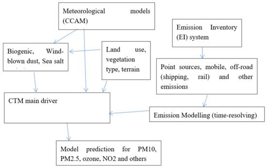 Schematic structure of the emission and chemical transport model (CTM) modelling system.