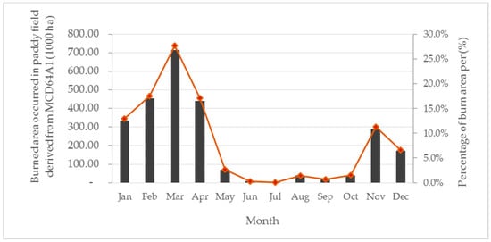 3.4. Spatial and Temporal Distribution of Rice Residues Open Burning