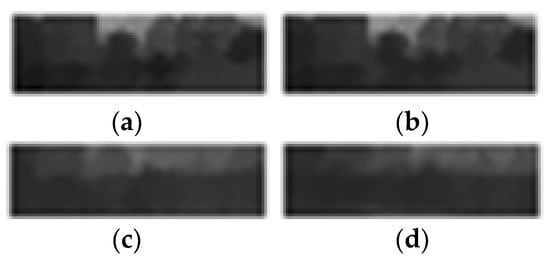 For the images with lower visibility, their edge features need to be enhanced to improve the matching accuracy. Commonly-used contrast enhancement methods include histogram equalization and contrast stretch. Since contrast enhancement is used to improve the accuracy of feature values extraction, whereas histogram equalization reduces the contrast of useful information, this paper uses linear contrast stretch to enhance edge features []. The results of four kinds of air visibility levels are shown in Figure 8.
