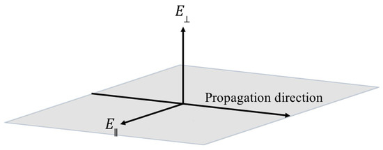 The decomposition of the electric field vector associated with a plane electromagnetic wave into parallel and perpendicular components ( and ) with respect to a reference plane.