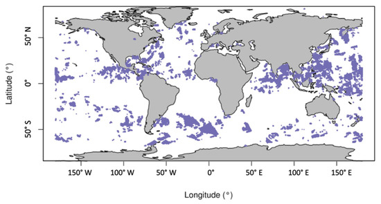 Distribution of cloud pixels used to produce the observation density distribution in Figure 15.