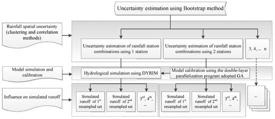 40]. Second, by employing a distributed hydrological model on a high-performance computing (HPC) system, the uncertainty of simulated runoff was also analyzed using the bootstrap method. Finally, the response of the hydrological simulation to rainfall spatial uncertainty can be quantified with an exponential formula, indicating the relevant asymptotic line on rainfall station density. Moreover, the details of the mentioned methods along with references are listed in the