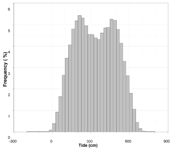 Histogram of hourly tide range at the Wi-do observation station (from October 2010 to December 2016).