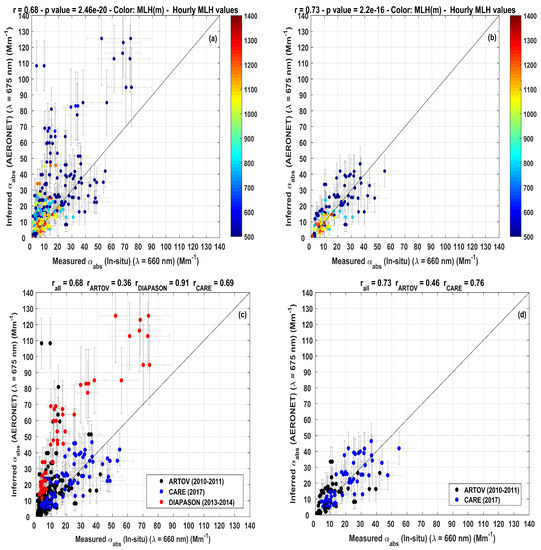 3.2. Surface Absorption Coefficient Comparison between AERONET Inferences and In-Situ Measurements