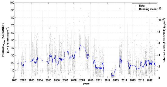 Black Carbon Aerosol in Rome (Italy): Inference of a Long-Term (2001–2017) Record and Related Trends from AERONET Sun-Photometry Data