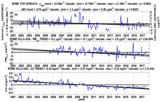 Chicago/Turabian StyleDi Ianni, Antonio, Francesca Costabile, Francesca Barnaba, Luca Di Liberto, Kay Weinhold, Alfred Wiedensohler, Caroline Struckmeier, Frank Drewnick, and Gian Paolo Gobbi. 2018. "Black Carbon Aerosol in Rome (Italy): Inference of a Long-Term (2001–2017) Record and Related Trends from AERONET Sun-Photometry Data" Atmosphere 9, no. 3: 81. https://doi.org/10.3390/atmos9030081