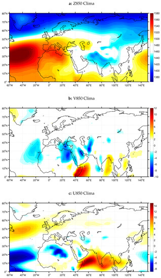 Figure 8), i.e., southerlies and northerlies, extending over almost all the NH. The wave of anomalies is found at the tropical and subtropical latitudes over Asia, Africa, Atlantic Ocean and the American continent, whereas over eastern Asia and the western Pacific Ocean, the wave shifts poleward, over the middle latitudes. The stronger anomaly centers are located over Eurasia, where two systems are detected. One is found over the subtropical latitudes, extending from the northern Bay of Bengal to the central Atlantic to the west, and the other is found over the middle latitudes of eastern Asia, with two action centers along the westerly jet. The system over the India and Africa region is located over an area characterized by low westerlies and easterlies (