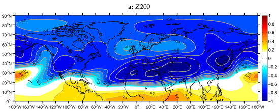 Figure 7a) of zonal wind speed at 200 hPa (U200). PCA was applied on the field of U200 in the domain 0