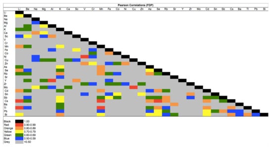 (A) Pearson correlation analysis of 31 selected metals collected during FDP; (B) Pearson correlation analysis of 31 selected metals collected during NDP.