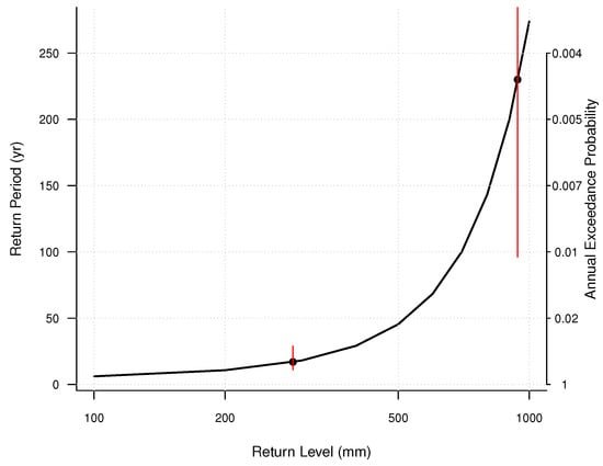 defined on and , where and , and are the GEV parameters. Taking into account also the crossing rate of the threshold u gives a three-parameter model equivalent to the three-parameter GEV model [30]. Inference based on this GPD approach is generally superior because it relies on more data [30].