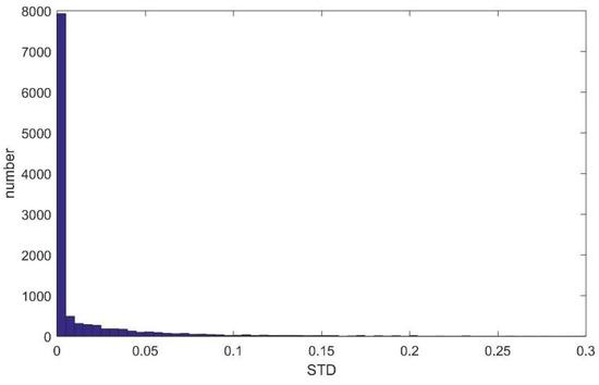 From Table 2, the monthly averaged standard deviation of GOSAT/ACOSv7.3 XCO2 is relatively larger (even up to 3.5 ppm) than that of XCO2 simulated from GEOS-Chem, indicating the more discrete variation of GOSAT/ACOSv7.3 XCO2 than those of GEOS-Chem. This phenomenon is similar to the result shown in Figure 2. The reason for more discrete variations of GOSAT/ACOS XCO2 may be that, on the one hand, the GEOS-Chem model is not better to capture complicated dynamic variations of XCO2 than satellite observations [15]. On the other hand, the retrieval errors on satellite observations [23,26] could lead to large uncertainties in the GOSAT/ACOSv7.3 XCO2.