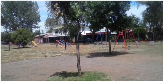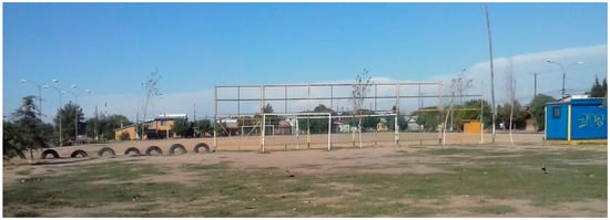 Parque Sarita Gajardo shows the greater area covered by bare ground: 69% of the total surface, 47% of which is occupied by two soccer fields with 6800 and 1500 square meters respectively. Grass in the park is poorly maintained (Figure 5): it is revealed to be a “brown area”.
