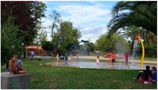 Most microclimatic studies refer to urban canyons, describing their relationship with building design, particularly with respect to height–width ratio and sky view factor. At the same time, thermal comfort in public spaces has attracted scientific attention. The first studies about thermal comfort were focused on instrumental methods, using equations that incorporate objective parameters (temperature and relative humidity of the air, wind or solar radiation). Later on, the studies included user’s degree of satisfaction with local climatic conditions for obtaining thermal comfort [,,,,,,]. In recent years, research related to other public spaces such as parks, squares, riverside, beaches, etc. has increased significantly.
