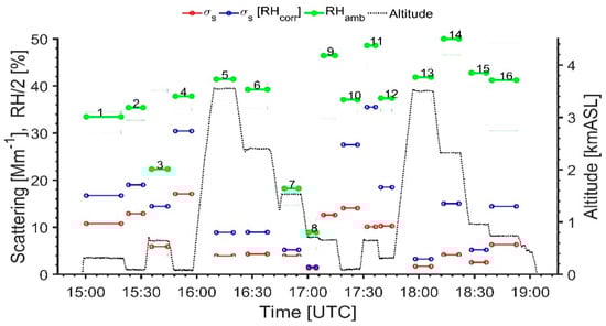 - Marshall, J.; Lohmann, U.; Leaitch, W.R.; Lehr, P.; Hayden, K. Aerosol scattering as a function of altitude in a coastal environment. J. Geophys. Res. 2007, 112, D14203. [Google Scholar] [CrossRef]