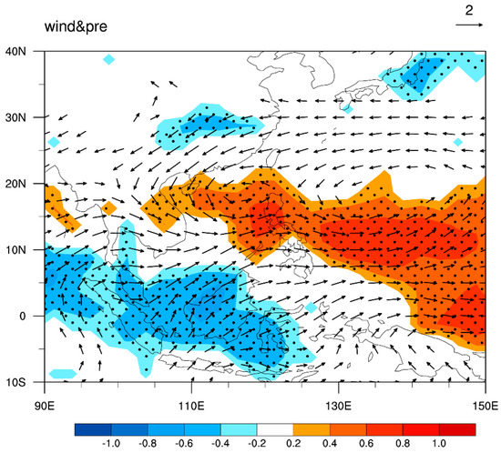 where the first and second terms on the right-hand side denote the 850-hPa zonal wind averaged over (5° N–15° N, 110° E–120° E) and over (20° N–25° N, 110° E–120° E), respectively. The SCSSMI is a good indicator of SCSSM rainfall and intensity. A positive (negative) index is associated with an anomalous cyclone (anticyclone) at 850 hPa in the northern SCS, enhanced (reduced) rainfall over the central-northern SCS, and hence a strong summer monsoon (Figure 1). The western North Pacific summer monsoon (WNPSM) index (WNPSMI) was defined by the differences in the 850-hPa zonal wind averaged over (5° N–15° N, 100° E–130° E) and over (20° N–30° N, 110° E–140° E) [33].