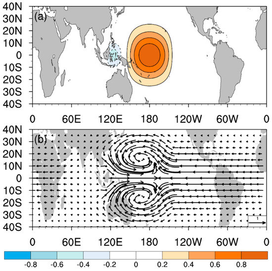 - Gill, A. Some simple solutions for heat-induced tropical circulation. Q. J. R. Meteorol. Soc. 1980, 106, 447–462. [Google Scholar] [CrossRef]