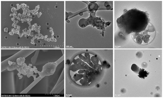 Chen et al. [] report a detailed study of the modification of the particle morphology deposited on different substrates and subjected to various conditions during storage, handling, and analysis. For their study, they generated, collected, and analyzed three types of particles: sodium chloride, sulfuric acid, and soot coated with sulfuric acid. Depending on substrates and conditions, they observe that morphological changes of the deposited particles could vary from negligible to severe. They, therefore, recommend caution during each step of the specimen lifetime from the collection to the analysis. They also provide specific conditions and sampling media that can work better for the specific problem and particle type investigated.
