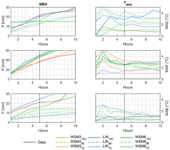 Among the used MP schemes, WSM6 shows more consistency, regardless of the lead time, and the errors are within the tolerance criterion for temperature (Table 4). LIN performs similarly, but results are less consistent and become worse with shorter lead times. Overall, the average WSM3 parameterization is the worst in reproducing NRH(5), while its relation with the lead time is less consistent than the LIN and WSM6 options for NRH(5) and T MAE (Figure 6).