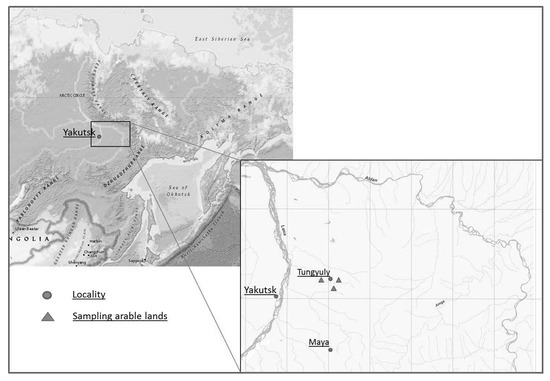 - Egorov, E.G.; Nikiforov, M.M. About the state of land use and crop production in the Republic of Sakha (Yakutia). In Regional Economy: Theory and Practice; Yakutsk Science Center: Yakutsk, Russia, 2009. [Google Scholar]