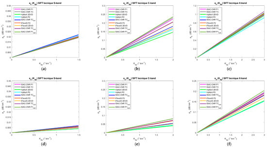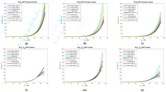 - testing the effect of the SIFT approach on all the other weather radar algorithms considered in this study, we found that the specific attenuation estimators (i.e., Equations (8) and (9)) and the polarimetric rainfall rate estimators (i.e., Equations (11)–(13)) also benefit from the application of SIFT. A reduction of NMAE of between 10% and 50% was obtained for these estimators, with a few exceptions for the R(Zh,Zdr) relation at C- and X-band;