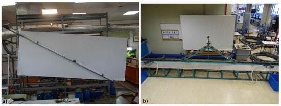 Experimental facilities to validate the emptying process: (a) single pipe (Universitat Politècnica de València, Spain). (b) pipeline of irregular profile (University of Lisbon, Portugal).