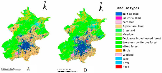 The land uses in: 2000 (A); and 2012 (B).