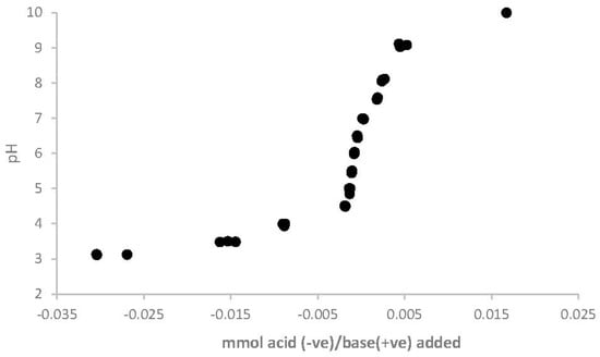 The biochar had a high proton binding capacity, whereas its capacity to bind OH− was limited as pH increased rapidly when base was added (Figure 1).
