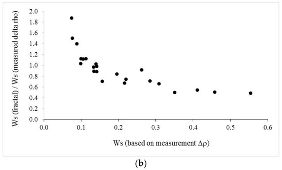 Combining the resulting values of ∆ρf and the Stokes settling velocity formula, we obtained in average ws = 0.184 mm s−1 from our measurements and ws = 0.151 mm s−1 from the Equation (8), with the same MNB and standard deviation than ∆ρf, and with a mean quadratic error being worth 0.077 mm s−1.