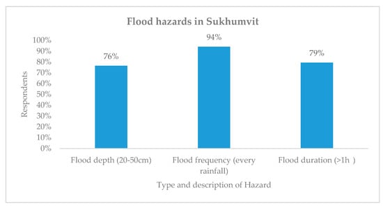 Interviews were conducted with 34 residents and business owners from the following streets: Soi Sukhumvit 26, Soi Sukhumvit 34, Soi Sukhumvit 39 and Soi Sukhumvit 63. Questions in these interviews were related to their experiences with flood hazards such as floodwater depth, duration and frequency of flooding and whether they faced any problems with critical services such as electricity, water supply, wastewater, transportation and food supply (see Appendix A). A summary of the results obtained from these interviews is given in Figure 6 and Figure 7.