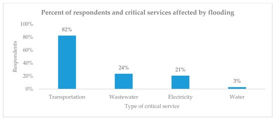 The common finding is that the majority of interviewees experienced problems with flooding, and these were rather frequent. The results concerning critical services are given in Figure 7, where transportation services were impacted the most.
