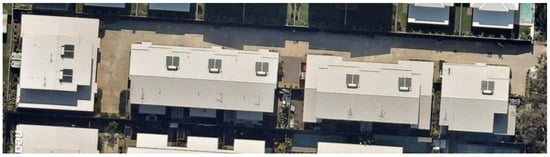 A stormwater treatment train was monitored over a 4.5-year period at a townhouse complex at Ormiston, about 28 km east of Brisbane, the capital city of Queensland. The site is within 1 km of Moreton Bay, a regionally sensitive waterbody. The monitored site has a total area of 2028 m2, with approximately 1140 m2 of roof area (56%), 500 m2 of concrete driveway (25%), and the remaining 388 m2 (19%) of landscaped area. An aerial photograph of the site is presented in Figure 1. This is a typical land use for the monitored treatment train, highly influenced by atmospheric fallout onto the roof and hardstand, runoff from landscaping, and small traffic levels.