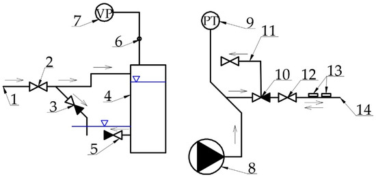 Scheme of pumping station PS_1 (numbering as in Figure 4).