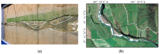 Channel morphology ((a) Run 3 at t = 600 min); (b) the Mataura River near cattle flat (from Google Earth)).