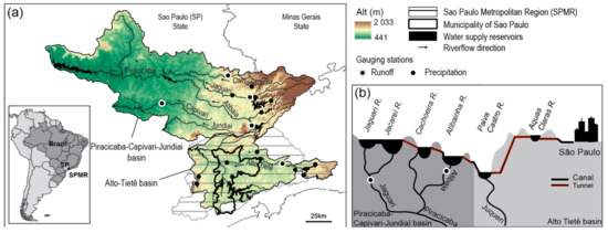 This study focuses on the two main regions that supply water to the SPMR: the Alto-Tietê basin and the headwater of the Piracicaba-Capivari-Jundiaí (PCJ) basin (Figure 1a).