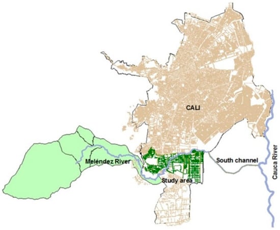 - CVC. Corporación Autónoma Regional del Valle del Cauca. Geographic Information System of the Cali-Meléndez-Pance–Aguacatal Catchments; Technical Report (in Spanish). CVC Publishing: Cali, Colombia, 2000. [Google Scholar]