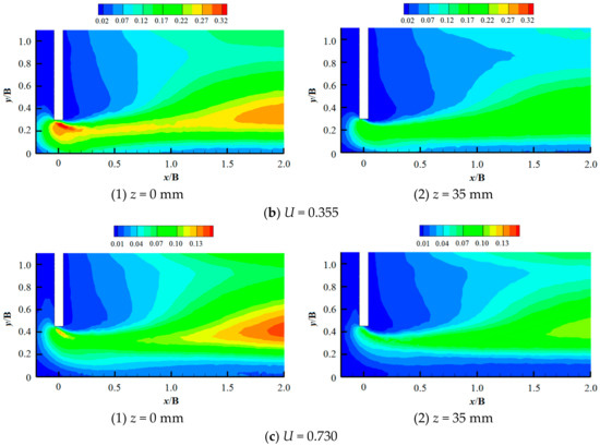 z = 35 mm. The different magnitude of turbulent kinetic energy is one of the significant factors affecting the gate vibration extremum. The experiment proved that the extremum of vibration displacement on section