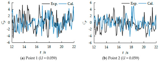 Figure 9 shows the time history curves of the fluctuating pressure coefficient of points 1 and 2 in 10 s.