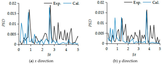 x direction is 2.582 with the corresponding experiment of 2.660. In addition, the computational Strouhal number for dominant frequency of vibration displacement in