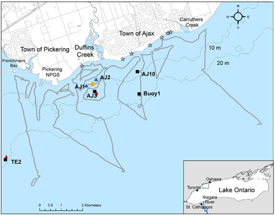 43] using different load estimation techniques reported higher and wide-ranging phosphorus loads from Duffins Creek. Estimates ranged from 13 to 17, 57 to 73 and 69 to 92 mT in 2007, 2008 and 2009, respectively. Load estimates from shoreline stormwater are not available but of interest considering the proximity to the shallow water where Cladophora is abundant. Loading of phosphorus to Lake Ontario varies among years due to weather patterns affecting tributary loading (e.g., [